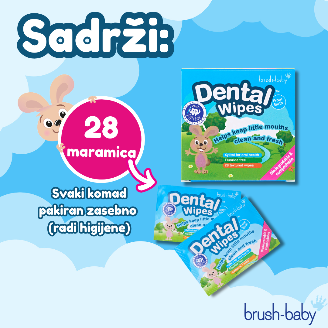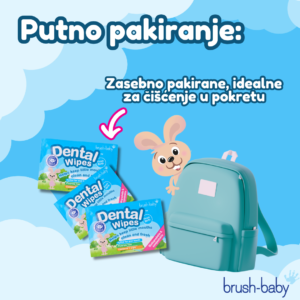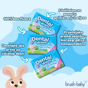 Brush-baby maramice idealne su za čišćenje desni i jezika novorođenčadi, pomažući u uklanjanju naslaga mlijeka i neugodnog zadaha. Izvrsne su i za mame koje pate od trudničkih mučnina – maramica pruža trenutno osvježenje bilo kada.