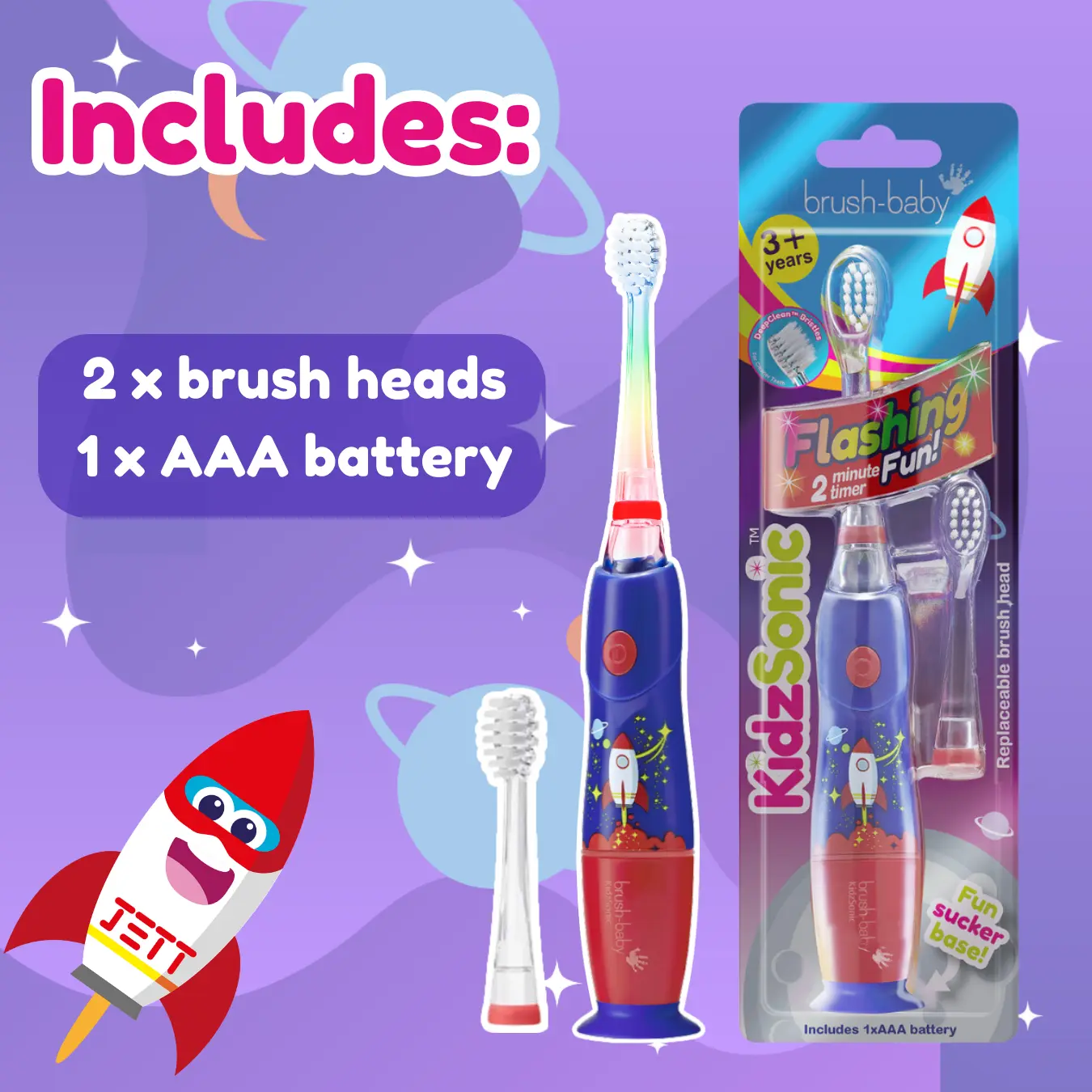U svemiru je teško zakazati termin kod zubara, stoga mali astronauti moraju sami brinuti o svojim zubima. Četkica “Jett the Rocket” osigurava lako polijetanje – uz treperava svjetla, dvominutno odbrojavanje i FlossBrush vlakna, svaka misija pranja zuba bit će uspješna, s rezultatima koji su “izvan ovog svijeta”. Neka ovo bude vaše najbolje otkriće do sada!