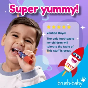 Brush-baby pasta s finim okusom borovnice savršena je za vašeg mališana jer je izuzetno ukusna, što pranje zuba pretvara u užitak, a ne obvezu.