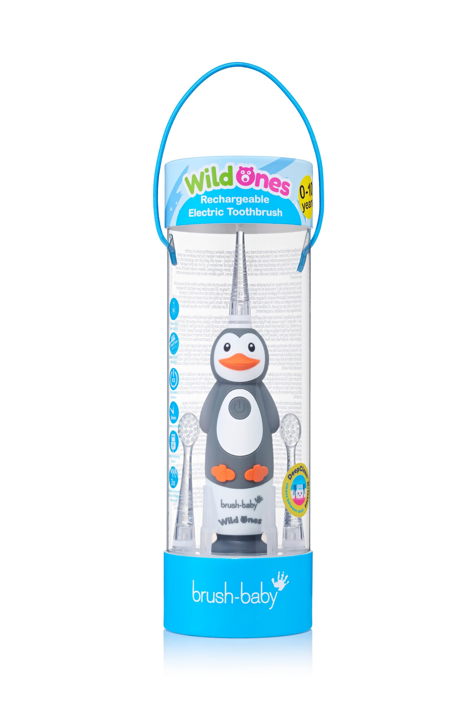 Pružite svojim mališanima razlog za riku uz najnovijeg člana naše WildOnes obitelji – Pingvina Percyija! Uz treperava svjetla i dvominutni mjerač vremena, ova električna četkica je istovremeno zabavna i funkcionalna. Potpuno je vodootporna, pa se može koristiti i tijekom kupanja, a vakuumsko postolje olakšava pohranu i čuva četkicu od padova do sljedećeg pranja zuba!