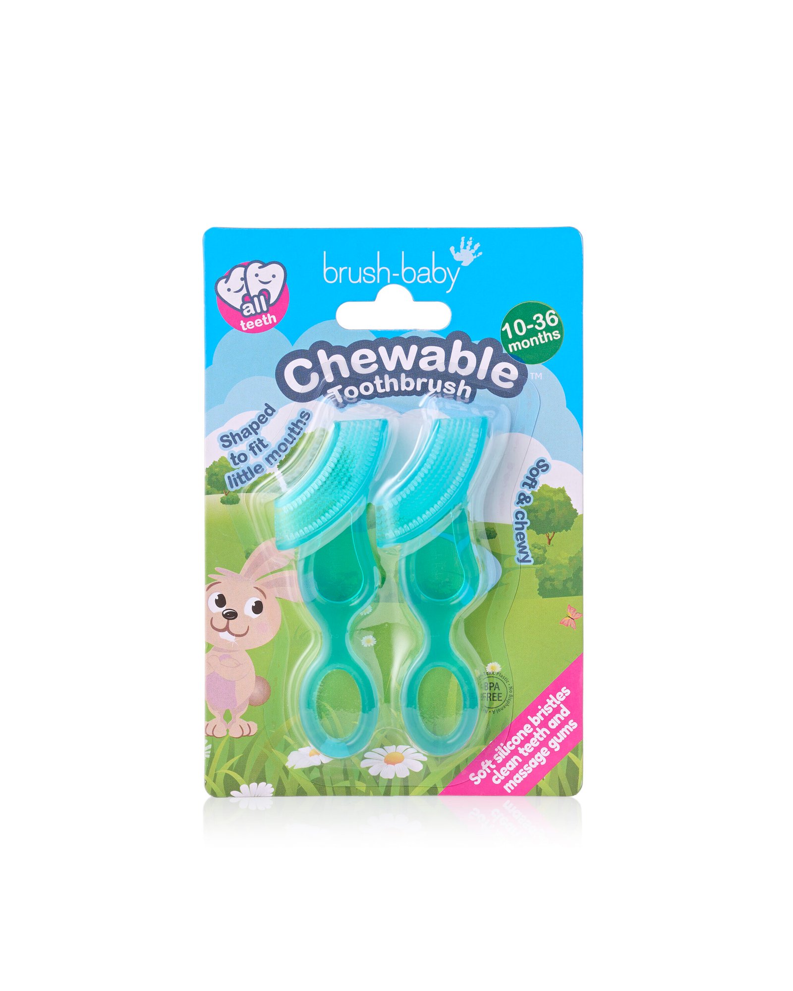 Brush-baby žvakajuća četkica za zube idealna je kao prva četkica za bebe koje vole grickati i žvakati. Nježno čisti zubiće, desni i jezik, a istovremeno masira i umiruje nadražene desni tijekom nicanja zubića.